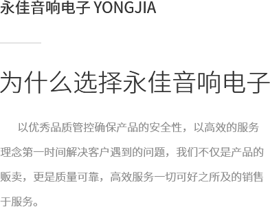 拉薩永佳音響電子有限公司 拉薩永佳音響電子有限公司坐落于美麗富饒的圣城拉薩,公司前身為拉薩昊成音響電子銷售有限公司,注冊資金為300萬元,成立于2010年3月公司地址位于西藏拉薩市貢布塘南側(cè)1號薩博廣場4-5、4-8號。拉薩永佳音響電子有限公司主營專業(yè)舞臺音響設(shè)備、會議音響系統(tǒng)設(shè)備、公共廣播音響系統(tǒng)設(shè)備、網(wǎng)絡(luò)及監(jiān)控設(shè)備、多媒體教學(xué)設(shè)備、多媒體投影機、幕布、弱電線材、辦公設(shè)備、LED液晶顯示屏品種齊全、服務(wù)效率、拉薩